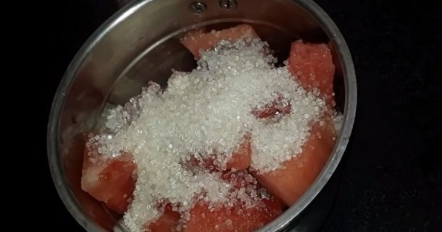 Αυτή είναι η πιο εύκολη συνταγή που μπορείς να ακολουθήσεις. Θα χρειαστείς δύο κούπες καρπούζι κομμένο σε κομμάτια και τέσσερις κουταλιές της σούπας ζάχαρη.