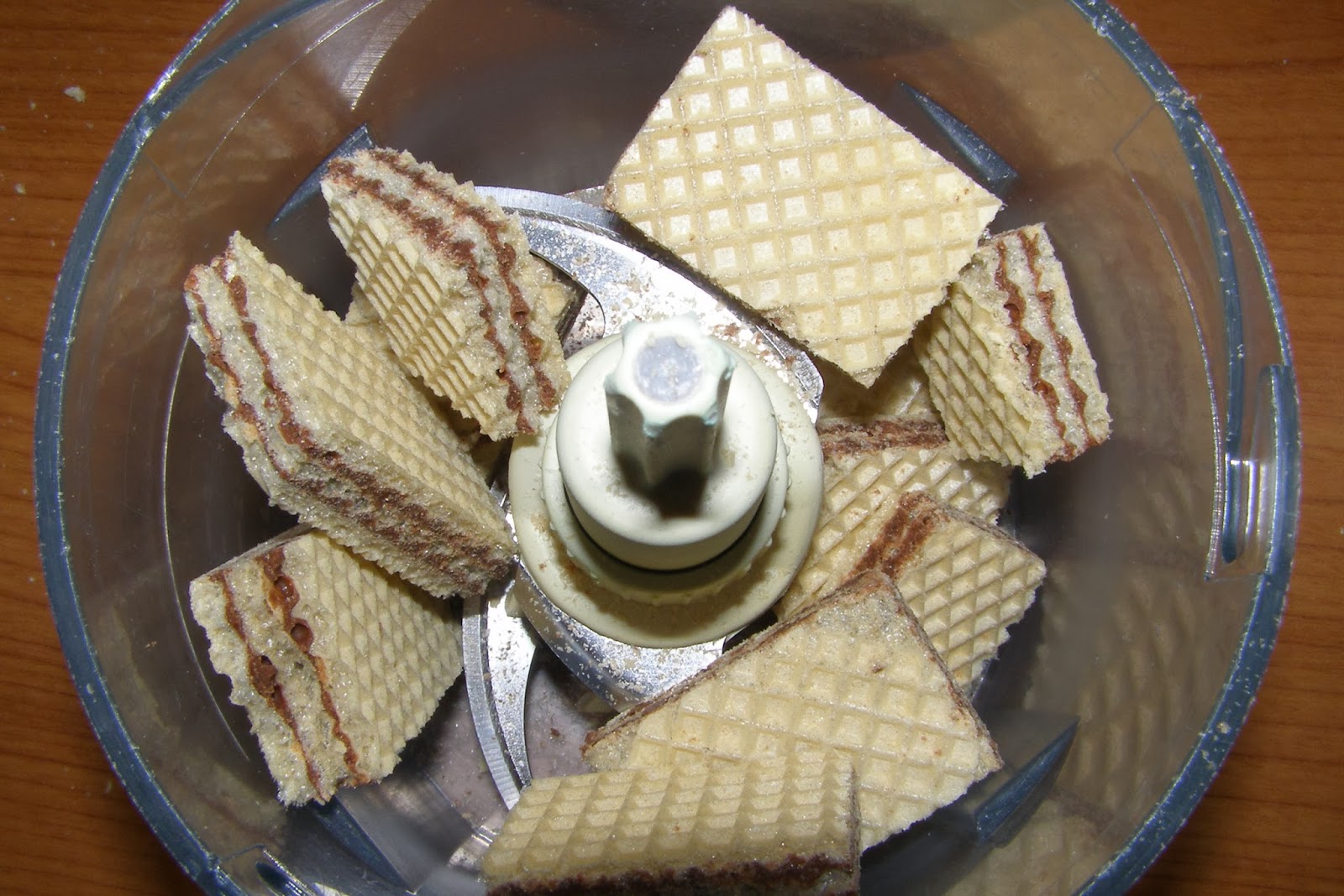 1 φλ ζάχαρη. 1 φλ νερό. φλούδα λεμονιού. τριμμένα γκοφρετάκια σοκολάτας.