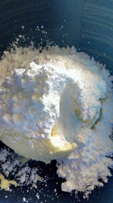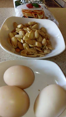 Στο μπλέντερ αλέθουμε τα αμύγδαλα μαζί με τη ζάχαρη άχνη και τα δυο ασπράδια!