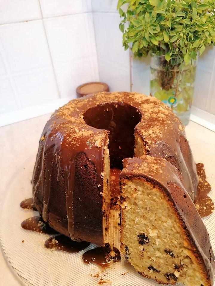 – Ψήνουμε το κέικ μας στον αέρα, σε προθερμασμένο φούρνο στους 170 βαθμούς Κελσίου για 60 λεπτά και γαρνίρουμε με γλάσο σοκολάτας και από πάνω με τριμμένο μπισκότο που περίσσεψε.