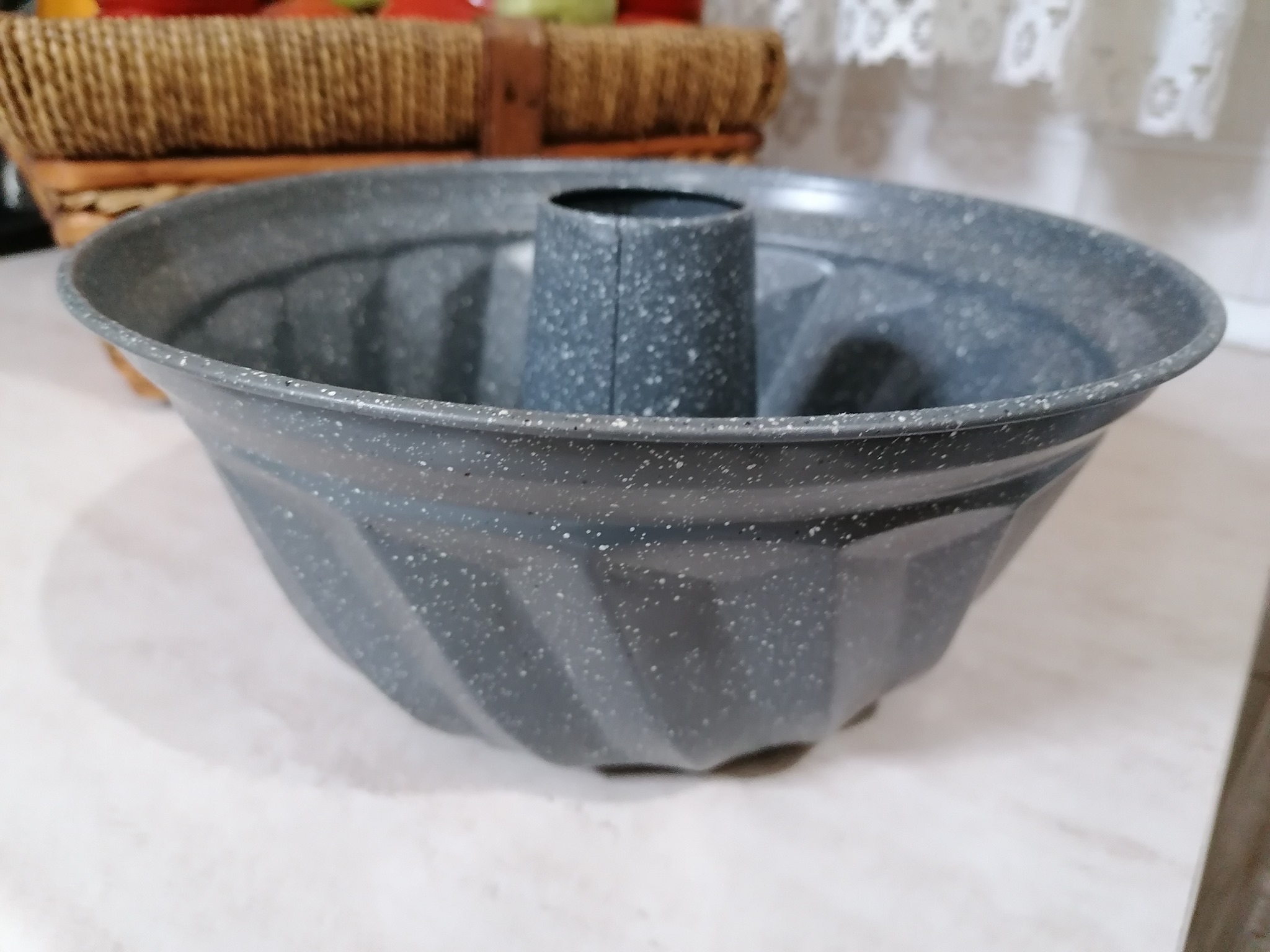 – Αφού ανακατέψουμε το μείγμα μας και γίνει ομογενές το βάζουμε σε μια βουτυρωμένη φόρμα 26 εκατοστά.