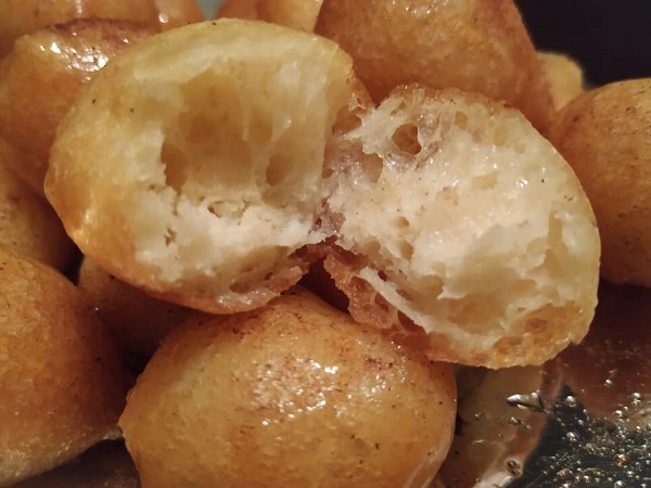 – Πρώτος τρόπος: Παίρνουμε στη χούφτα ζύμη και κλείνουμε. Πιέζουμε να βγει από το επάνω μέρος λίγη ζύμη και βγαίνει στρογγυλή. Στη συνέχεια ρίχνουμε γρήγορα στο λάδι. Θέλει πολύ γρήγορες κινήσεις και μαστοριά!