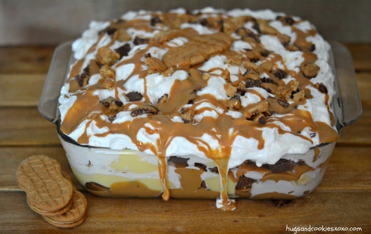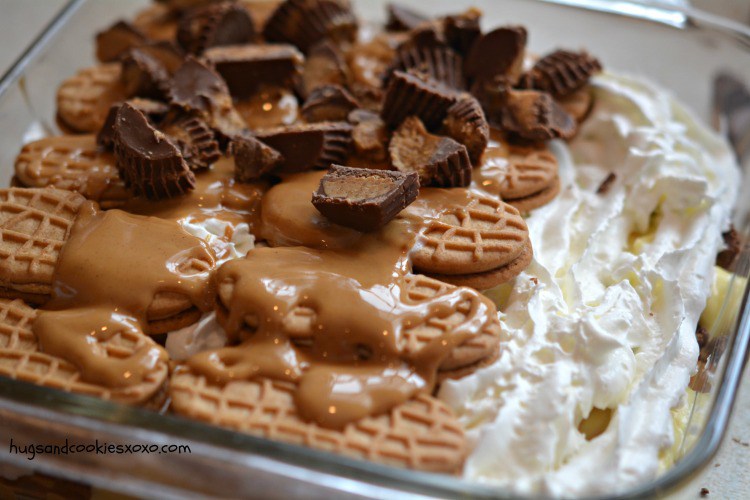 - Διακοσμήστε την κορυφή με κομματάκια από από σοκολατάκια, θρυμματισμένα μπισκότα , σταγόνες φυστικοβούτυρου.