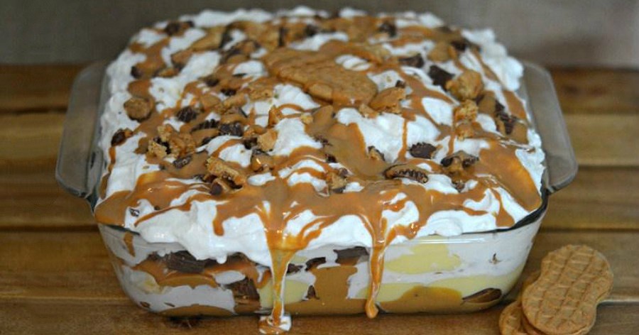 Διακοσμήστε την κορυφή με κομματάκια από από σοκολατάκια, θρυμματισμένα μπισκότα , σταγόνες φυστικοβούτυρου.