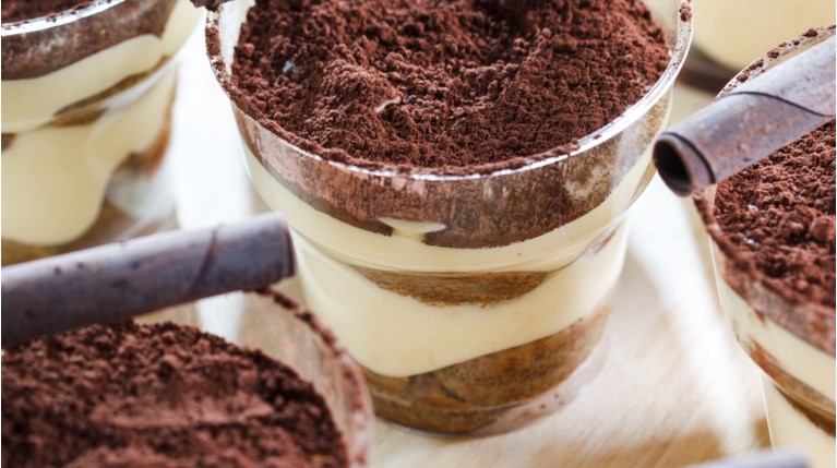 Σε ποτηράκια βάζουμε κάτω μία στρώση τριμμένο μπισκότο, συνεχίζουμε με λίγο από το μείγμα της σοκολάτας, ξανά μία στρώση τριμμένο μπισκότο και τελειώνουμε με τη σαντιγί.