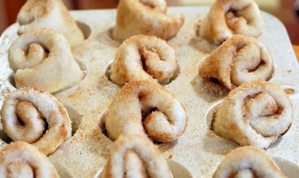 #6. Πασπαλίζουμε πάλι με ζάχαρη και κανέλα και τοποθετούμε σε μια καλά βουτυρωμένη φόρμα για mini muffins.