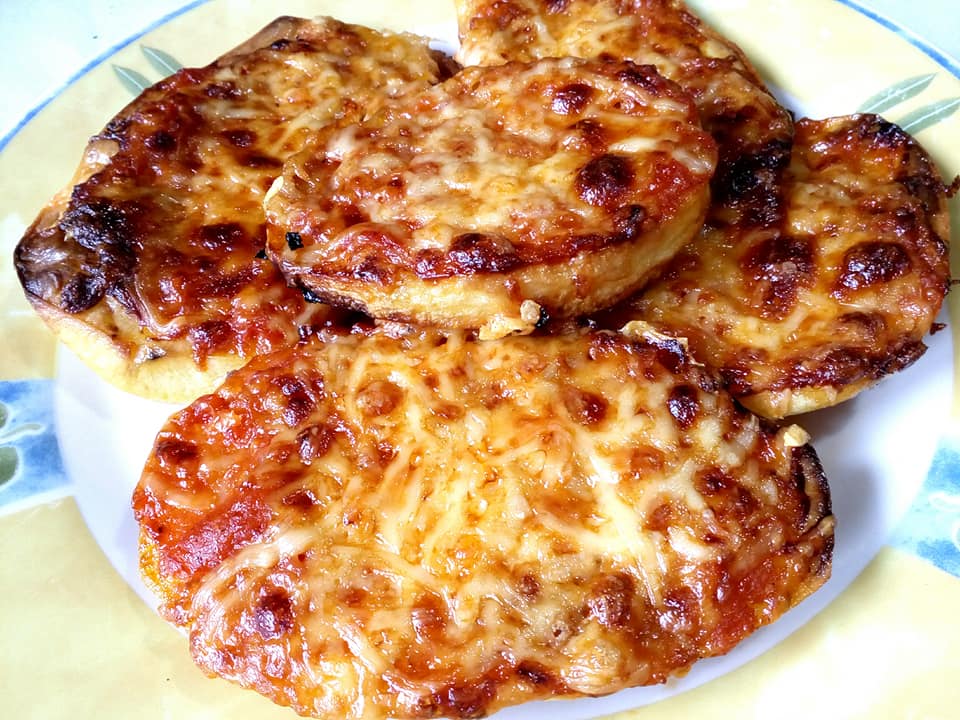 Μία νόστιμη συνταγή με μελιτζάνες και ψημένες πατάτες σε λαδόκολλα στο φούρνο, σαν πιτσάκια, θα ξετρελάνει μικρούς και μεγάλους.