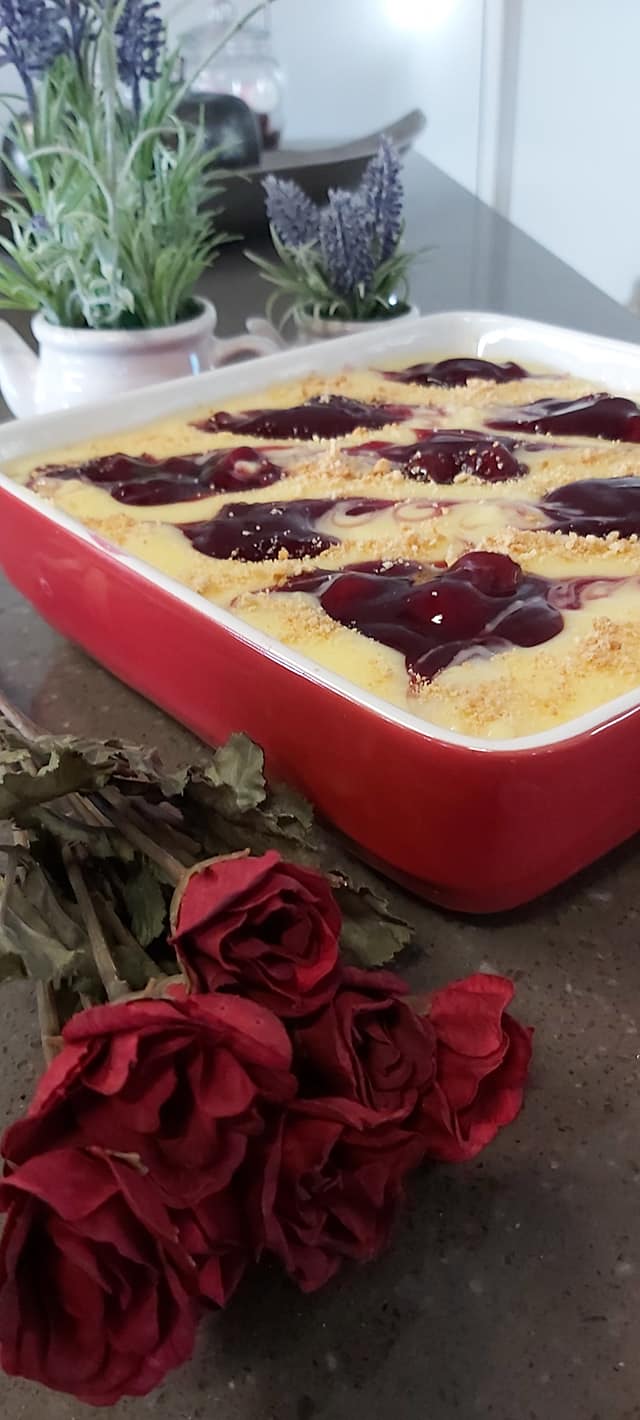 – Τοποθετούμε το πυρίμαχο ταψάκι στο ψυγείο αφού κρυώσει η κρέμα.