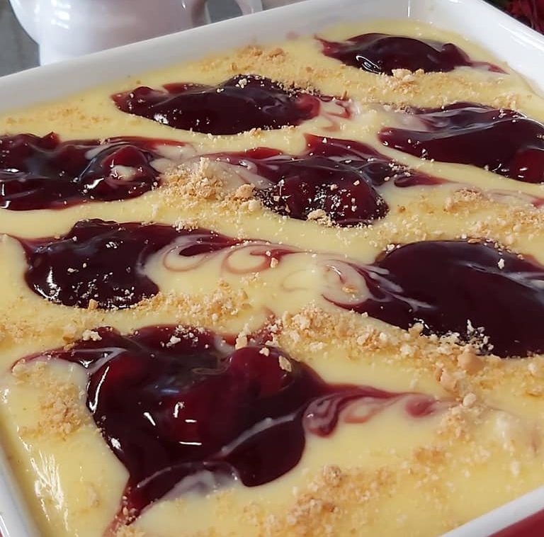 – Ρίχνουμε τη μισή κρέμα, μια στρώση ακόμα μπισκότα, την υπόλοιπη κρέμα και πάνω στην κρέμα το υπόλοιπο γλυκό του κουταλιού.