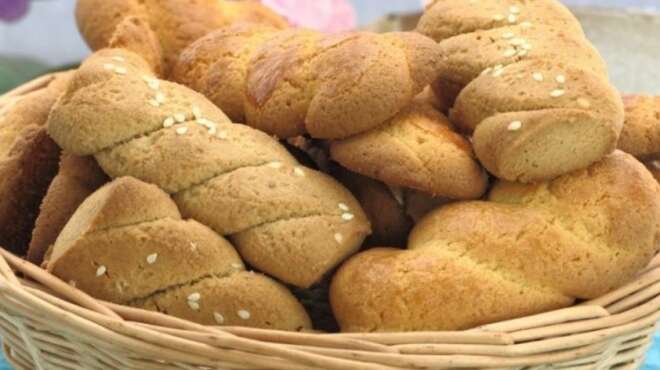 - Πλάθετε τη ζύμη σε κορδόνια πάχους μικρού δαχτύλου και φτιάχνετε κουλουράκια. Τα τοποθετείτε σε λαδωμένο ταψί, τα πασπαλίζετε με σουσάμι και τα ψήνετε στους 175 ο C για 16’ περίπου.