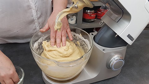 Βουτάμε τα χέρια σε λιωμένο βούτυρο και διπλώνουμε τη ζύμη. Το επαναλαμβάνουμε 3-4 φορές δημιουργώντας διπλώματα στη ζύμη.