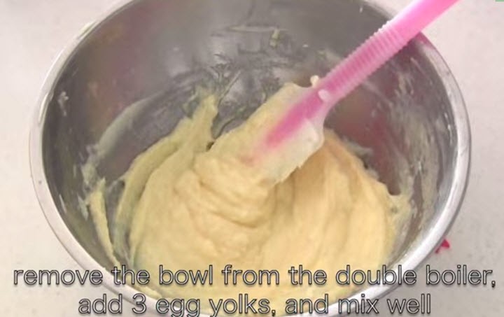 5. Ενώστε με το μείγμα των κρόκων τη μαρέγκα σε τρεις δόσεις και ανακατέψτε απαλά.