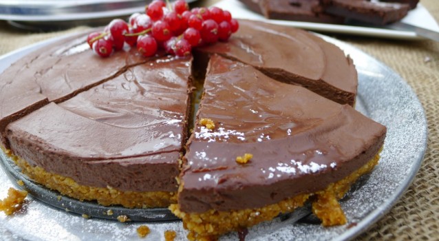 Μόλις είναι έτοιμο ρίξτε το πάνω απ’ τα μπισκότα και βάλτε το στην κατάψυξη μέχρι να σφίξει.