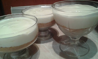 Θρυμματίζετε τα μπισκότα και τα μοιράζετε σε μπολάκια ή ποτήρια.