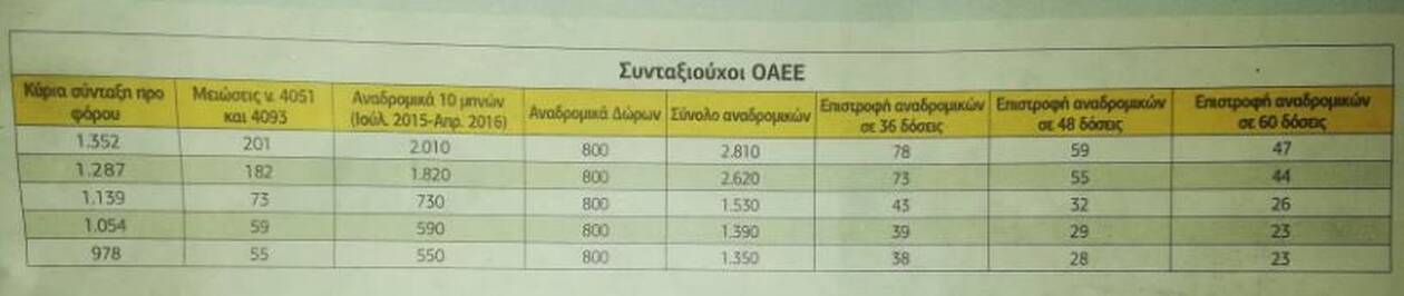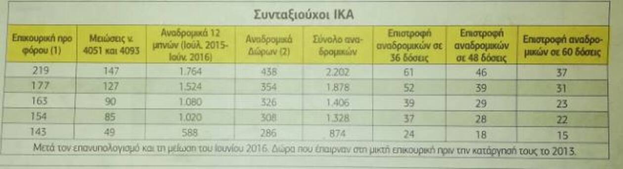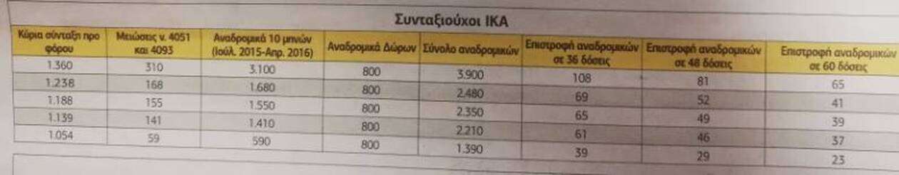 Οι πίνακες για τα αναδρομικά στις κύριες συντάξεις: