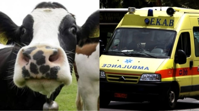 Πάγωσαν όσοι ήταν μπροστά: Αγελάδα ποδοπάτησε άνδρα στη Λάρισα και τον έστειλε στο νοσοκομείο με φορείο
