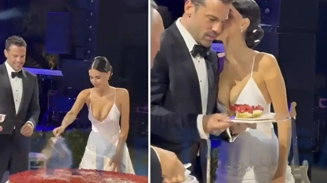 Γάμος Αργυρού – Νίκα: Η στιγμή της κοπής της τεράστιας γαμήλιας τούρτας