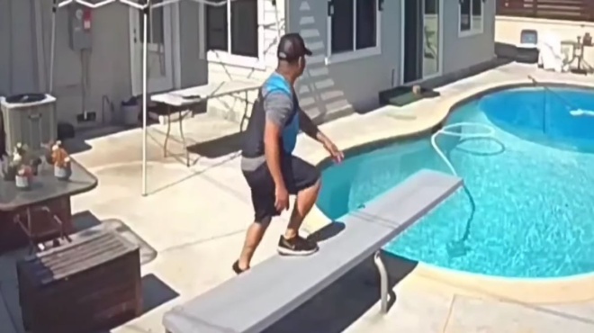 Επικός ντελιβεράς παρέδωσε παραγγελία σε σπίτι και έκανε… βουτιά στην πισίνα για να δροσιστεί από τη ζέστη