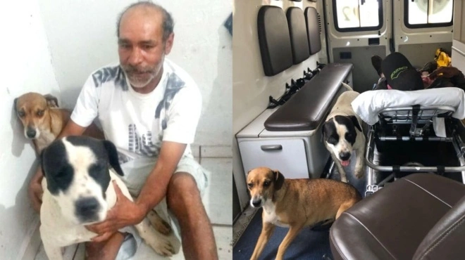 Ανιδιοτελής αγάπη: Δύο σκύλοι συνόδεψαν το αφεντικό τους στο νοσοκομείο με το ασθενοφόρο