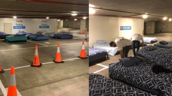 Εθελοντές στρώνουν κάθε βράδυ κρεβάτια για άστεγους σε πάρκινγκ που κλείνει τη νύχτα