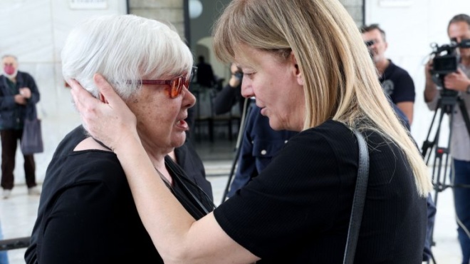 Μαυροντυμένη, με πρησμένα μάτια, υποβασταζόμενη: Τα πρώτα λόγια της Μαρίνας Ψάλτη στην κηδεία του Φέρτη