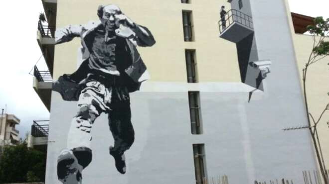 Τεράστιο γκράφιτι στην μνήμη του Θανάση Βέγγου, έφτιαξαν σε πολυκατοικία στην Πάτρα.