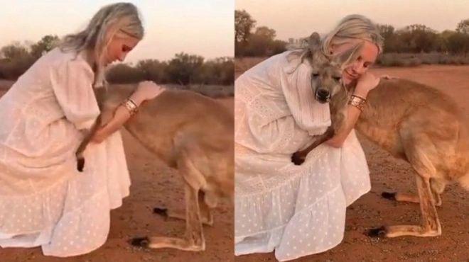 Γυναίκα παρηγορεί και αγκαλιάζει πυρόπληκτο καγκουρό και η εικόνα κάνει το γύρο του κόσμου