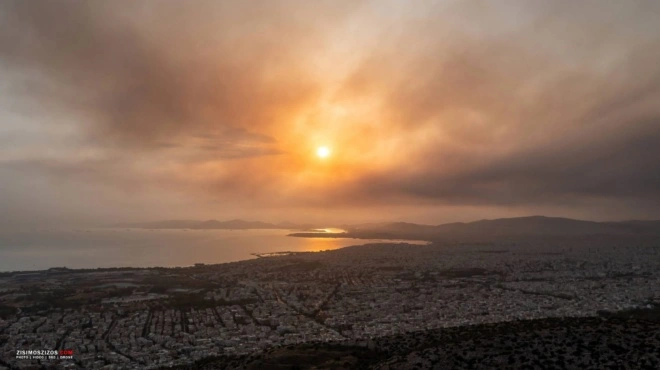 Εθνικό Αστεροσκοπείο Αθηνών:Έως τα Αντικύθηρα επιβαρύνθηκε η ατμόσφαιρα από τον καπνό των πυρκαγιών