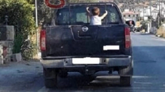 Απαράδεκτοι γονείς μεταφέρουν το μωρό απροστάτευτο στην καρότσα αγροτικού αυτοκινήτου