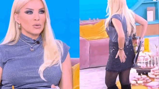 Με ξεκούμπωτο φερμουάρ στο αέρα η Κατερίνα Καινούργιου, προσπαθούσε να το κρύψει από την κάμερα με το ντοσιέ: «Μην με δείχνεις από πίσω!»