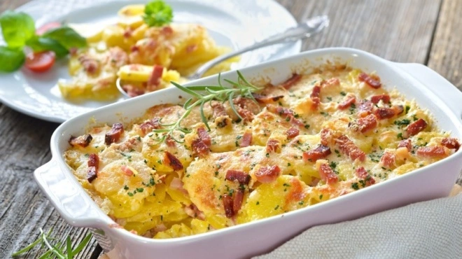 Τέλειο ογκρατέν με πατάτες, κοτόπουλο και μπεσαμέλ στο φούρνο, έτοιμο σε 20 λεπτά