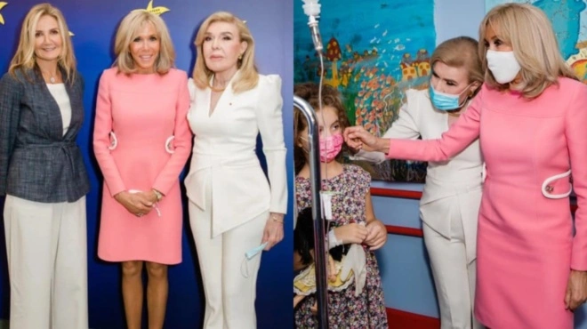 Μαρέβα Μητσοτάκη, Μαριάννα Βαρδινογιάννη και Μπριζίτ Μακρόν μαζί στην Ογκολογική Μονάδα Παίδων