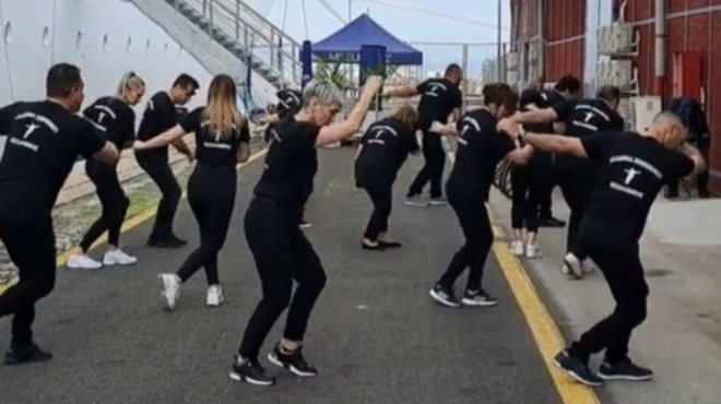 Βγήκαν στα μπαλκόνια και τραβούσαν βίντεο: Υποδέχτηκαν τουρίστες κρουαζιερόπλοιων με ζεμπεκιές, συρτάκι και κουλούρια