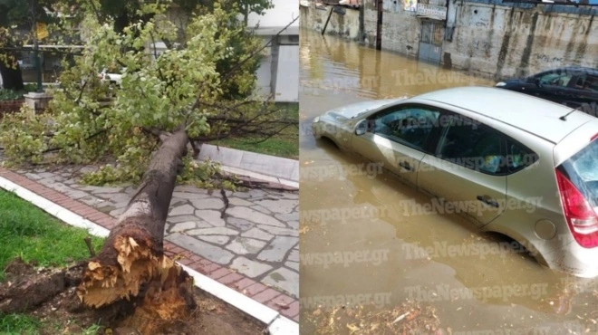 Μπουρίνια έπληξαν τη Μαγνησία: Ποτάμια οι δρόμοι, αυτοκίνητα “θάφτηκαν” στο νερό στον Βόλο