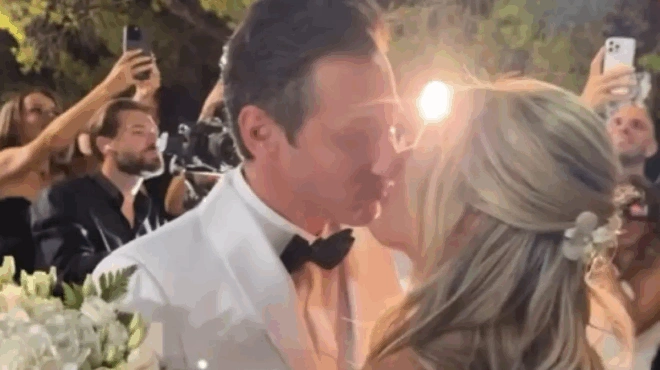 Παντρεύτηκαν ο Πάνος Καλίδης και η Λεάννα Μάρκογλου – Η άφιξη της νύφης και το φιλί