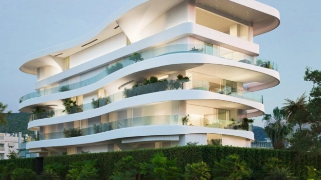 Το κτίριο “διαστημόπλοιο” στη Γλυφάδα, με τους υπαίθριους χώρους και τις πισίνες σε κάθε όροφο.