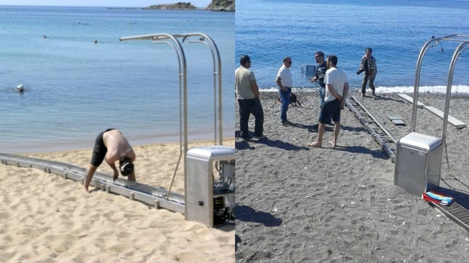 Παιδιά παίζουν σε παραλία με τη ράμπα πρόσβασης ΑΜΕΑ και το διαδίκτυο ξεσπά στους γονείς τους