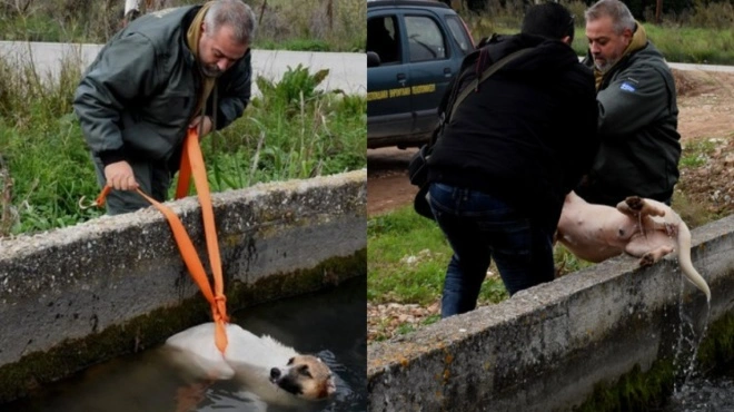 Σκύλος έπεσε σε αρδευτικό κανάλι στο Άργος και οι συνάνθρωποι μας τον έσωσαν την τελευταία στιγμή από πνιγμό