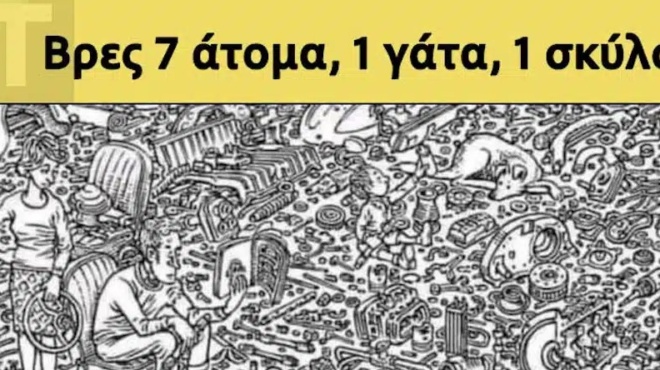 Βρείτε τα 7 άτομα την 1 γάτα και τον 1 σκύλο