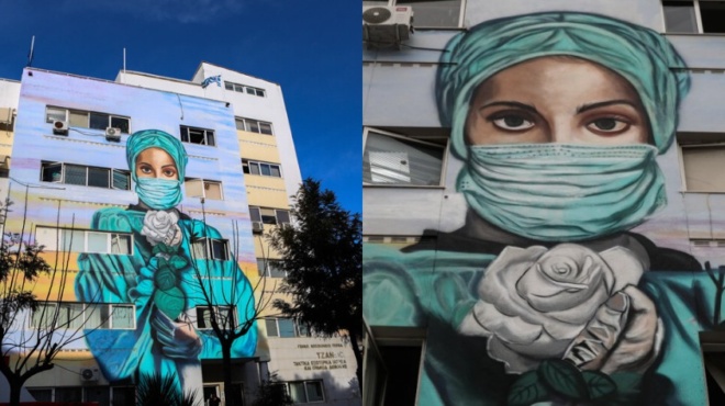 Η επιβλητική τοιχογραφία στο Τζάνειο αφιερωμένη στους ήρωες της πανδημίας