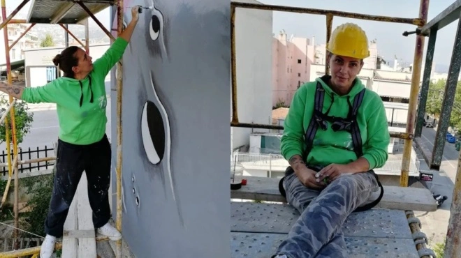 Βολιώτισσα έφτιαξε μόνη της ένα εντυπωσιακό Γκράφιτι και έκανε την πόλη της ακόμα πιο όμορφη