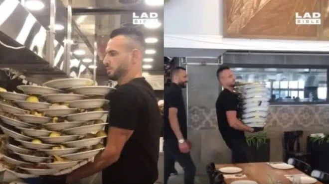 Σερβιτόρος για πολλά Tips – Κουβαλάει 33 πιάτα γεμάτα φαγητό