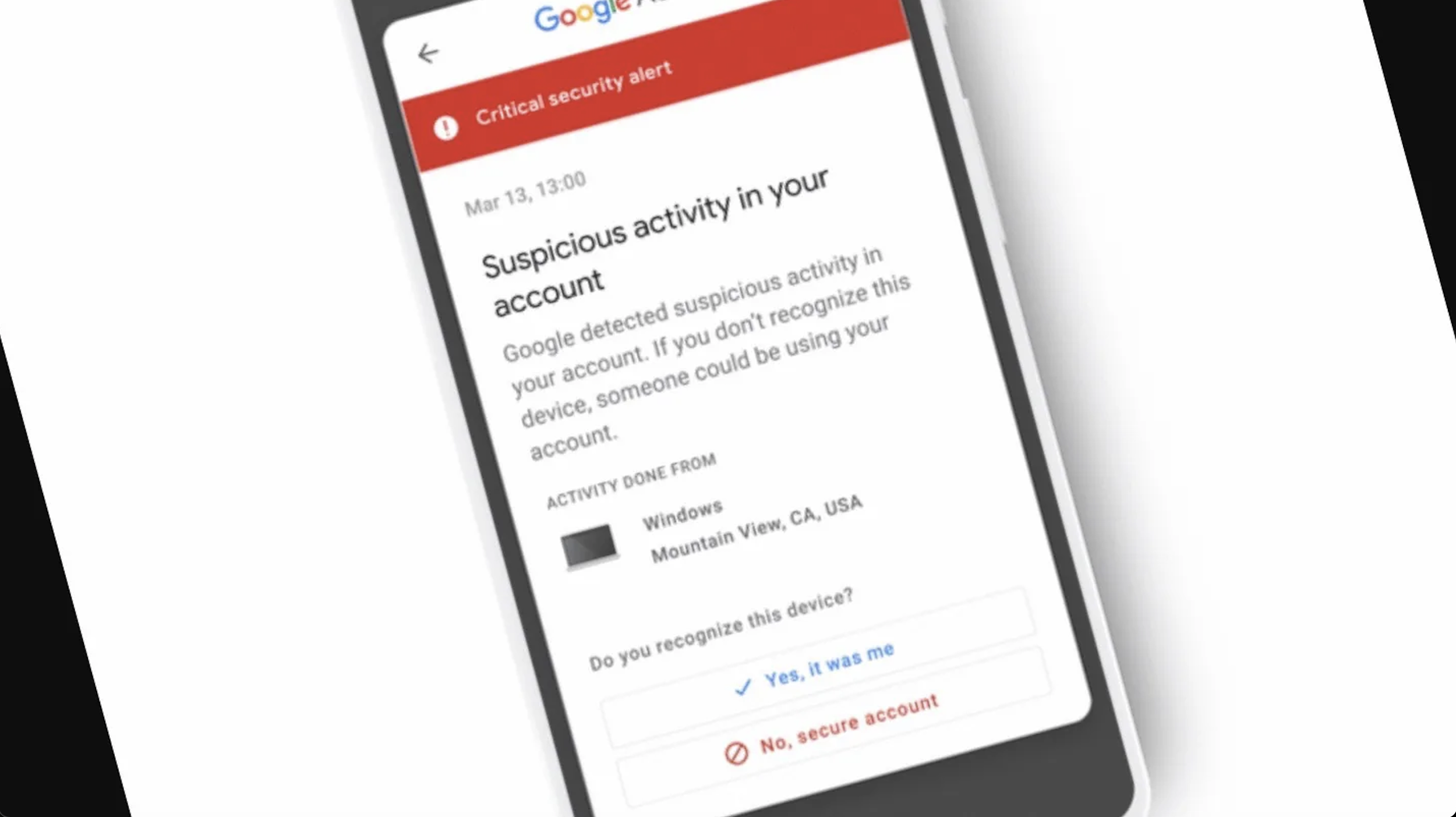 …η Google σε ενημερώνει άμεσα, ενώ στον λογαριασμό σου θα εμφανιστεί προειδοποίηση με κόκκινο σταυρό και σύνοψη των αλλαγών που ενδέχεται να μην έκανες εσύ.
