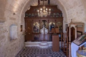 Η γειτονική Μονή Αρκαδίου, το σημαντικότερο μοναστήρι του νησιού, χτίζει την εκκλησία, που είναι αφιερωμένη στον Αρχάγγελο Μιχαήλ και μέσα στον ναό υπάρχει η εικόνα της Παναγιάς της Γαλακτοτροφούσας.