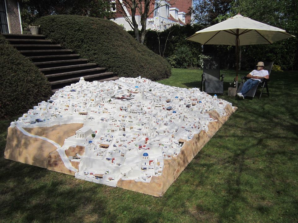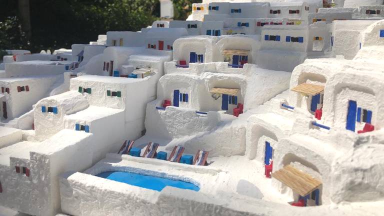 Αυτό ακριβώς έκανε ο Fer Geerts από την πόλη Bergen op Zoom στην Ολλανδία. Δημιούργησε ένα μοντέλο εμπνευσμένο από το ελληνικό νησί της Σαντορίνης. Τώρα κάθεται στον κήπο του με ένα ποτήρι κόκκινο κρασί και φαντάζεται ότι περπατά στα σοκάκια των ελληνικών νησιών. Αν κλείσει τα μάτια του, μπορεί να φανταστεί το ειδυλλιακό ηλιοβασίλεμα που έχει κάνει τη Σαντορίνη παγκοσμίως γνωστή.