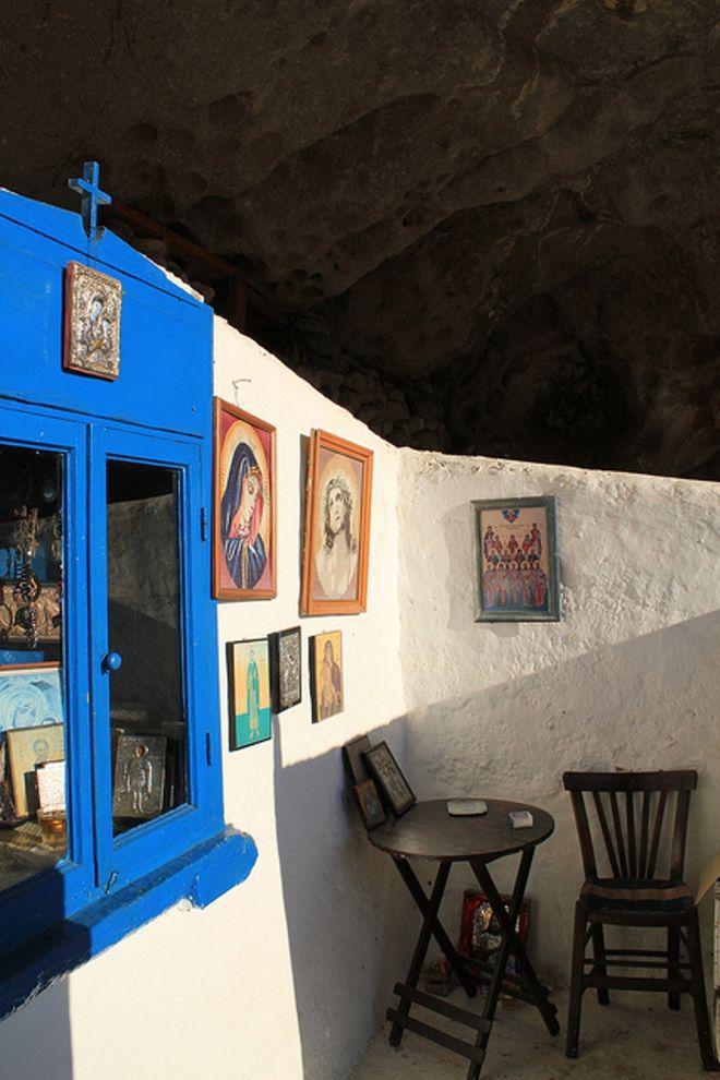 Το τελευταίο και δυσκολότερο κομμάτι της διαδρομής είναι μερικές δεκάδες πετρόχτιστα σκαλιά μέχρι το κρυμμένο εκκλησάκι. Το θέαμα όμως που αντικρίζει κανείς είναι πρωτόγνωρο και αποζημιώνει τη μικρή αυτή δυσκολία. Ο ναΐσκος μοιάζει με ημιτελές έργο. Τα ασβεστωμένα τοιχώματα του βρίσκονται στην εσοχή του βράχου, που μοιάζει με μικρή σπηλιά. Δεν υπάρχει τρούλος στο ξωκκλήσι. Αντ’ αυτού, τη θέση του κατέχει η οροφή της εσοχής.
