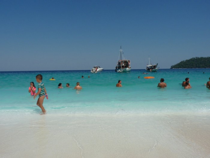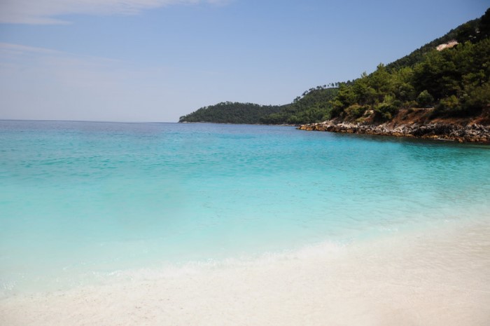 Η ψιλή άσπρη άμμος που λαμπυρίζει και τα φανταστικά τυρκουάζ νερά της παραπέμπουν σε εξωτικές παραλίες της Καραϊβικής και του Ειρηνικού.