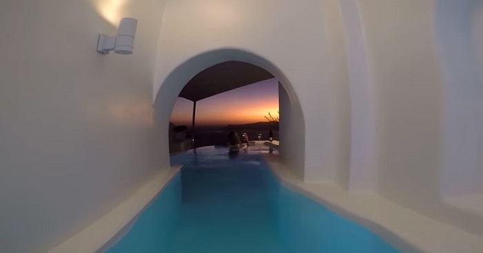 Σαντορίνη: Πόσοι έχουν κάνει μπάνιο σε ξενοδοχείο με πισίνα; Πόσοι είχαν την τύχη να έχουν ένα δωμάτιο με ιδιωτική πισίνα; Η απάντηση μπορεί να λίγοι ή ακόμη και καθόλου. Πώς θα σας φαινόταν, αν σας έλεγαν πως όχι απλώς υπάρχει δωμάτιο σε ξενοδοχείο με πισίνα, αλλά πως έχει και δική του εσωτερική πισίνα; Νομίζετε ότι σταματά εδώ το ενδιαφέρον; Υπάρχει τέτοιο δωμάτιο και μάλιστα η εσωτερική πισίνα του οδηγεί σε μία εξωτερική, η οποία θα σας κάνει να παραμιλάτε. Αυτό θα συμβεί, διότι θα δείτε ένα από τα πιο όμορφα ηλιοβασιλέματα του κόσμου. Ποιο είναι αυτό; Μα φυσικά το ηλιοβασίλεμα της Σαντορίνης.