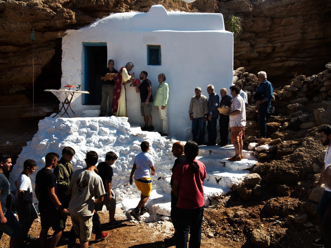 Οι κάτοικοι στη Μύκονο ζουν όπως οι κάτοικοι σε όλη την έκταση της ελληνικής επαρχίας. Εξευμενίζουν τα θεία. Προσεύχονται σε αυτά και παρακολουθούν κάθε τελετουργική εκδήλωση που λαμβάνει χώρα στο νησί. Οι Μυκονιάτες σπέρνουν τα χωράφια τους και δρέπουν τους καρπούς της σποράς. Οι Μυκονιάτες είναι οι «αφανείς». Κι όσοι σπεύδουν στο νησί για λίγες μέρες με μοναδικό τους κίνητρο την ολοήμερη διασκέδαση, σπάνια αφήνουν χρόνο για να παρατηρήσουν όσους κινούνται σε άλλο ρυθμό από το δικό τους.