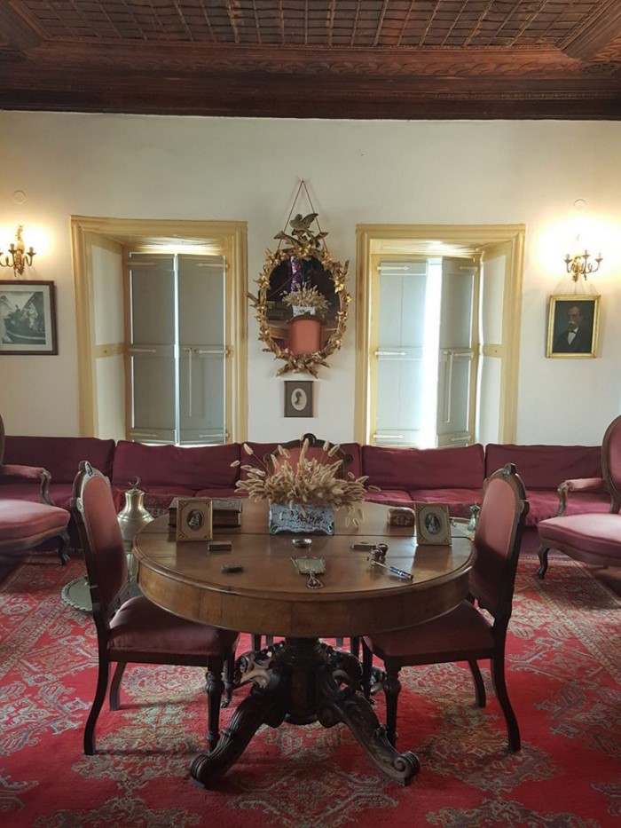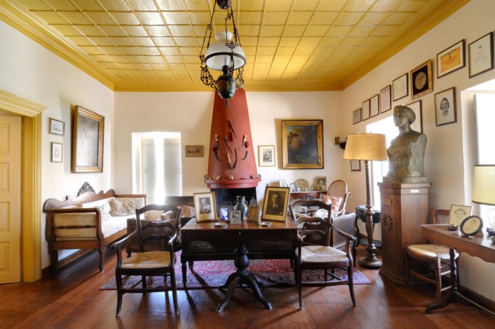Αυτό είναι και το πιο εντυπωσιακό δωμάτιο του αρχοντικού όπου γινόντουσαν τα διάφορα πολεμικά συμβούλια. Μεταξύ Μπουμπουλίνας και των άλλων καπεταναίων του νησιού.
